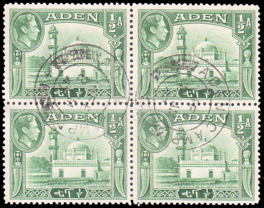 1/2a KGVI Aldrus Mosque with Aden Camp postmark Block of four. Used.Seller Information