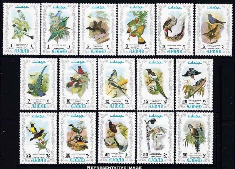 1dh, 1dh, 2dh, 3dh, 3dh, 5dh, 7dh, 10dh, 12dh, 15dh, 20dh, 25dh, 30dh, 40dh, 50dh and 80dh Birds. Mint never hinged.