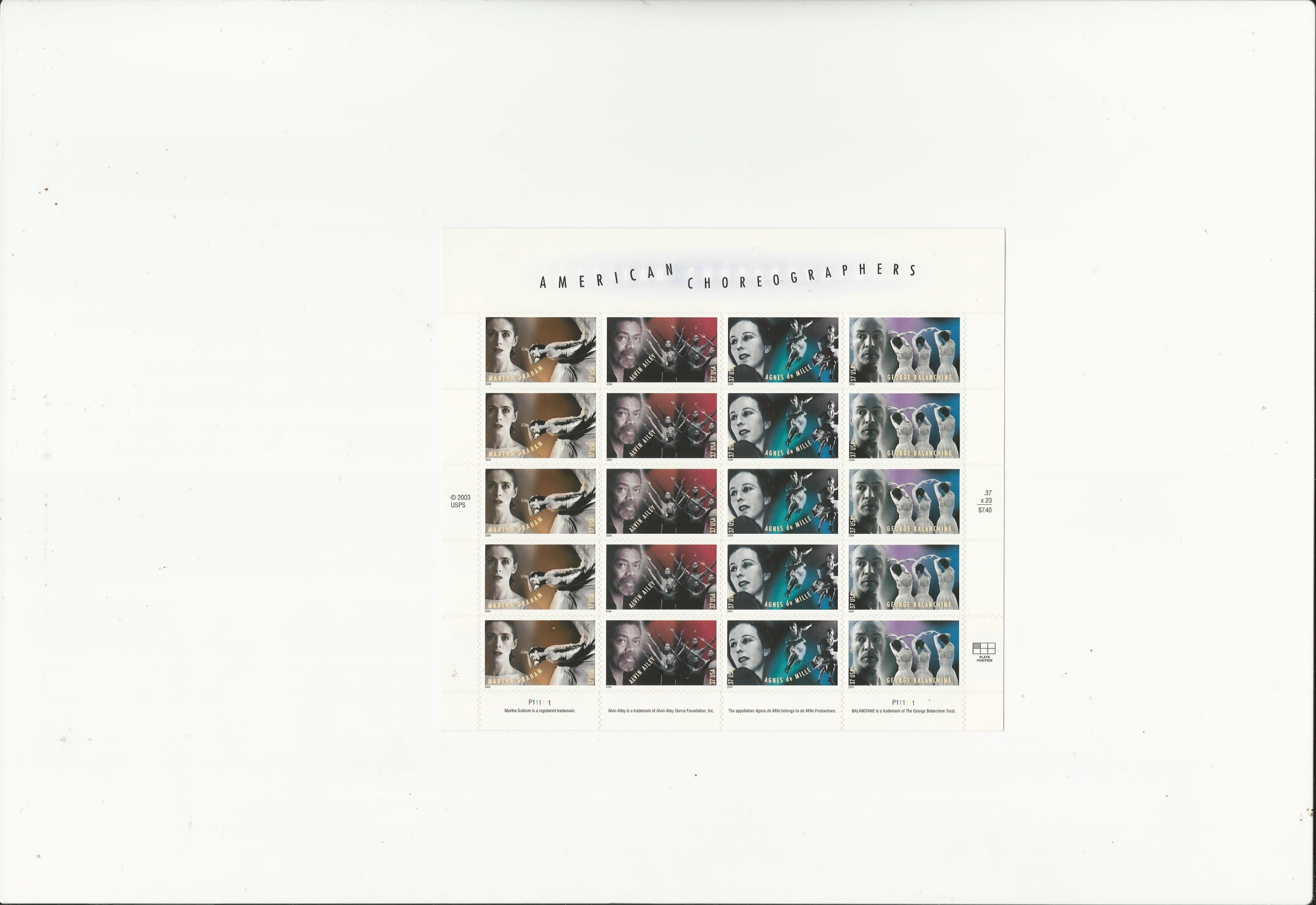 American Choreographers Scott #3843a MNH F-VF OG Post Office fresh 20 X 37 cents FV$7.40Seller Information