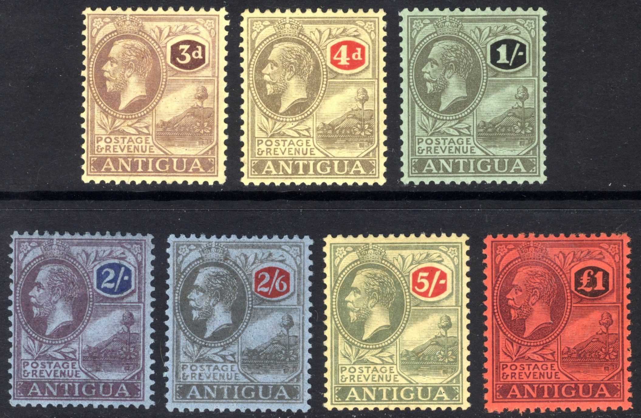 Antigua 1921 3d-£1 GV Definitive Watermark MCA Sc 58-64 SG 55-61 MLH Cat $330