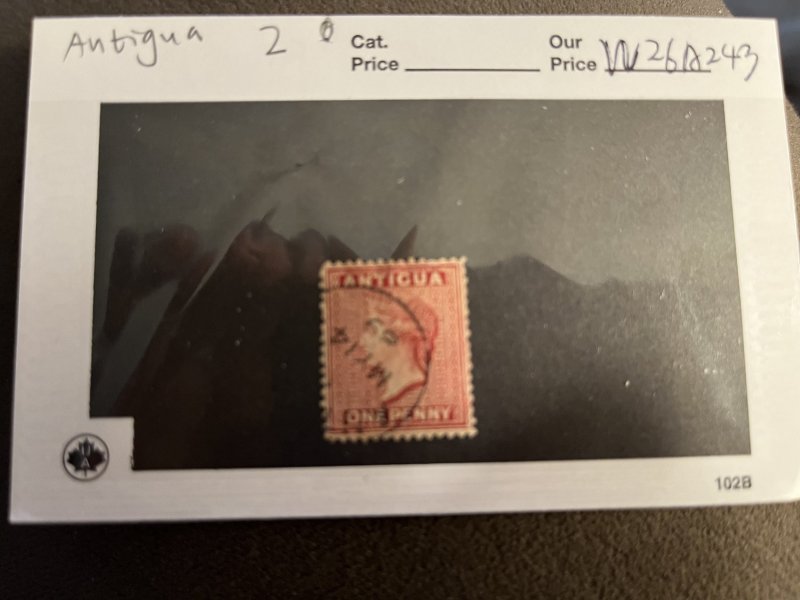 Antigua 2 U F-VF a dull rose one penny of Queen Victoria with a SCV $ 60.00