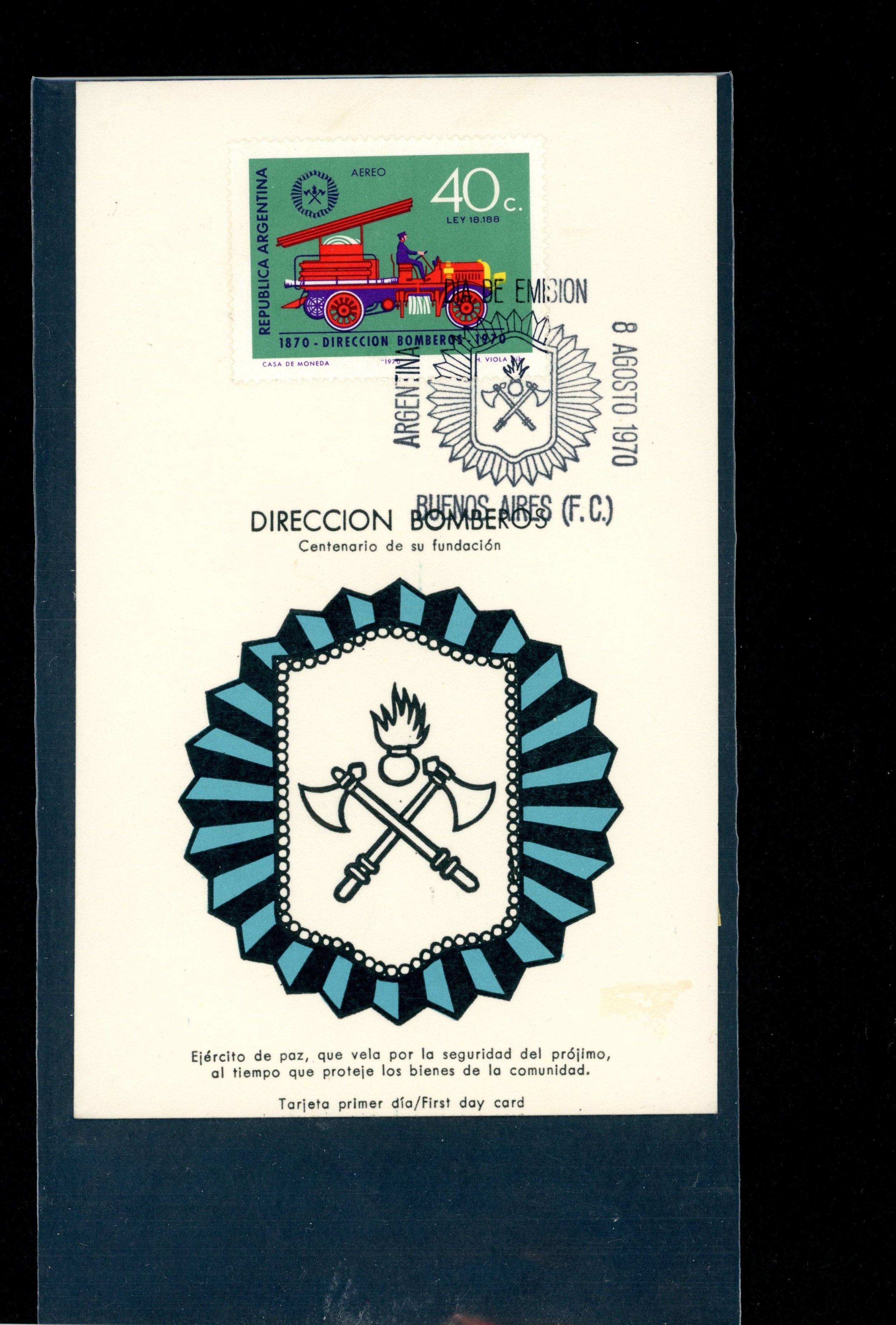 Argentina Maxi Card Centenary of the Fire Brigade with old fire truck and fire brigade COAT of ARMS. Very nice - from my collectionSeller Information