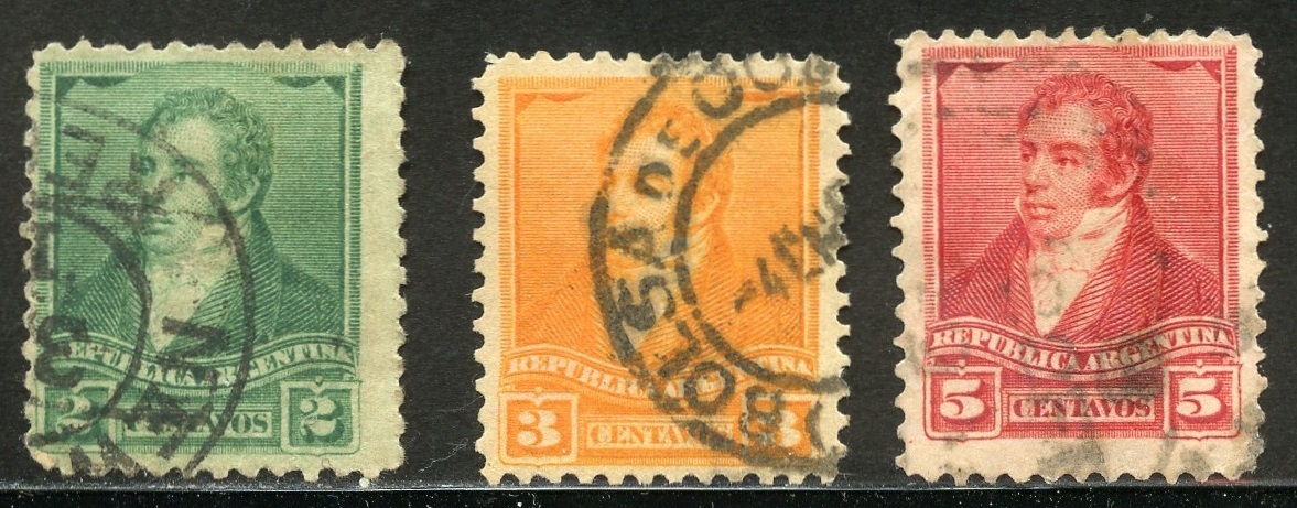 Argentina Scott 94-95, 110 UFH - Rivadavia - Shortish perfs around, #94 with Wmk 94 inverted, #95 Wmk undetermined, #110 Wmk 95, all Perf 11.5 - SCV $1.05