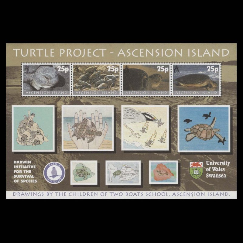 Ascension 2000 (mnh) turtle project miniature sheetTurtle project miniature sheet. Fresh and fine. Mint never hinged. Sgms799; sc754
