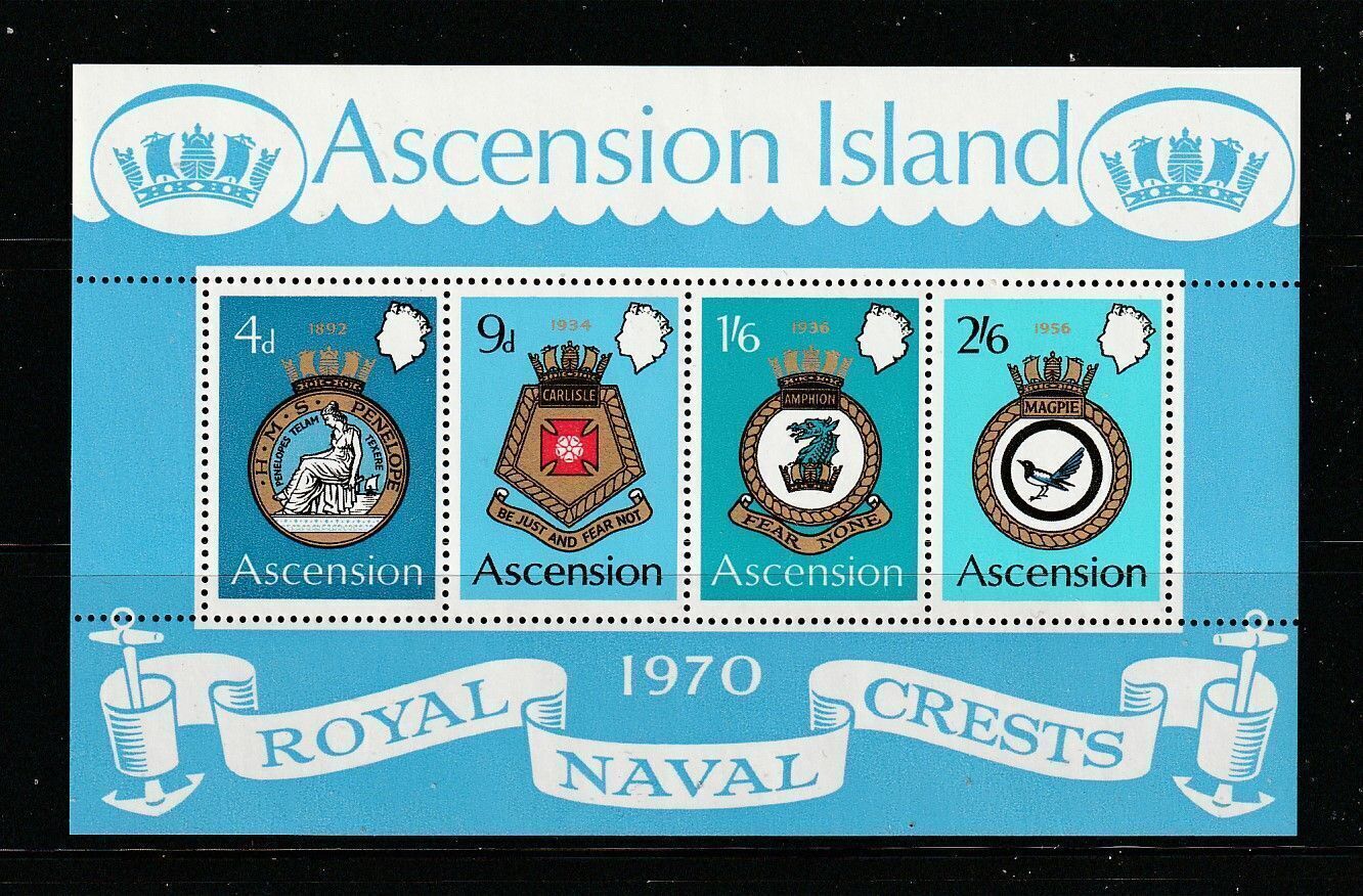 Ascension MNH S/S 137a Royal Navy Ships Coat Of Arms 1970 SCV 12.50Seller Information