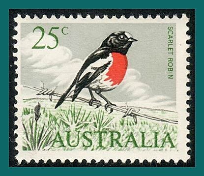 (SG 396; Sc 410) Single stamp from definitive issue showing scarlet robin bird. The scan is an example of the stamp you will receive.