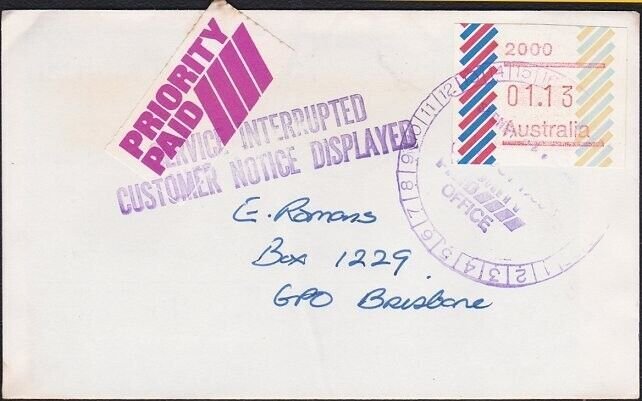 AUSTRALIA 1985 $1.13 Frama Priority cover ex Sydney - Service Interrupted..B8186