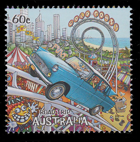 Australia, Scott #3938, 2013 Road Trip - Car on Roller Coaster Tracks & Gold Coast issue in Mint Never Hinged condition.Scott 2017 Catalogue Value $1.10