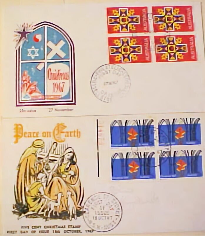 Australia fdc christmas blocks 1967. Fine condition. Shipping and handling $1.50 usa, international $3.25 multiple winning bids can combine to save postage. Calif. Buyers please add 9.50 % sales tax. We ship around ... Read More