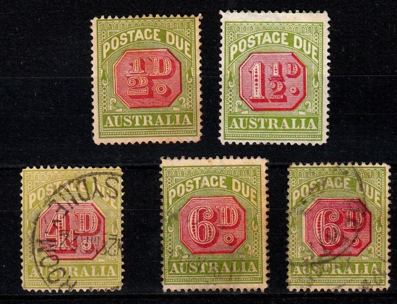 AUSTRALIA POSTAGE DUE 5 VALUES MINT & USED Some Values With Tone Spots