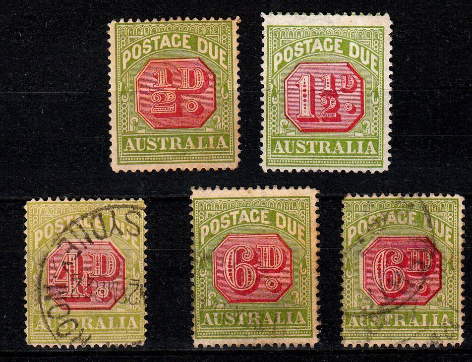 AUSTRALIA POSTAGE DUE 5 VALUES MINT & USED
