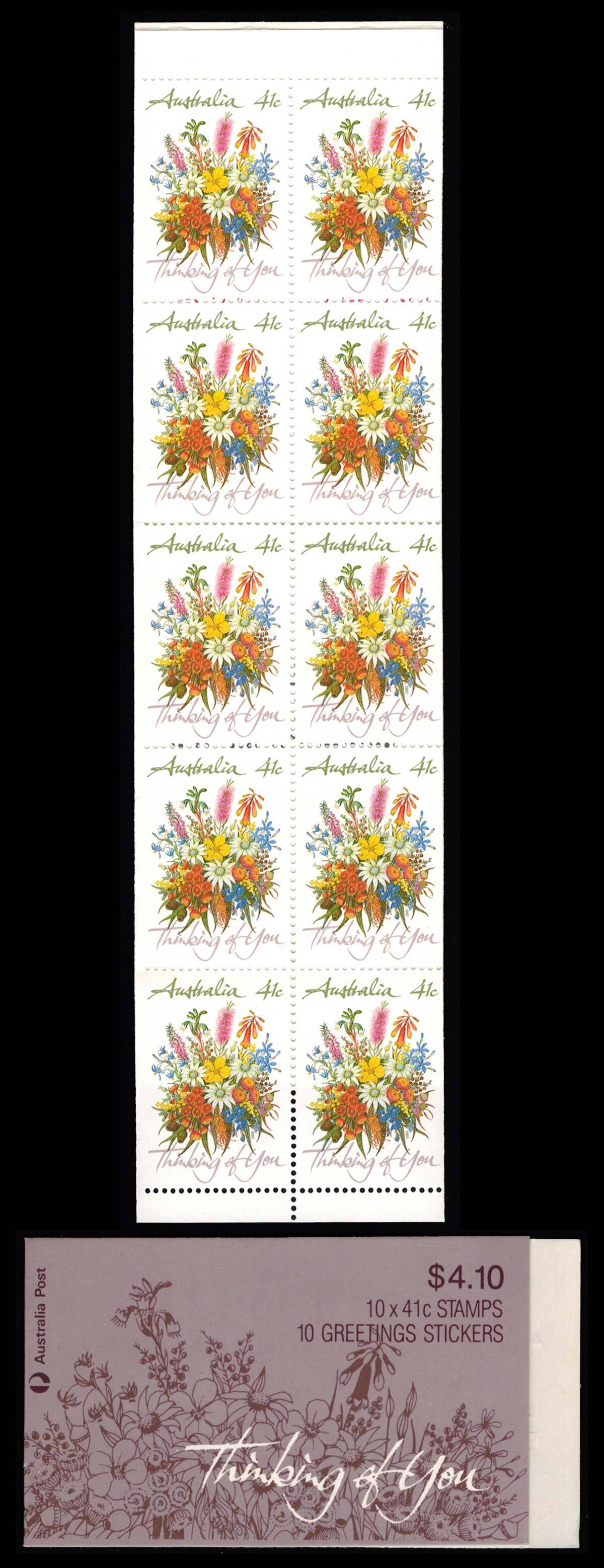 41c Thinking of You Booklet Pane of 10 with 10 Greetings Stickers. Mint never hinged.
