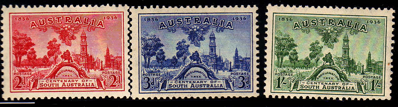 2d, 3d and 1/- South Australia. Mint never hinged.