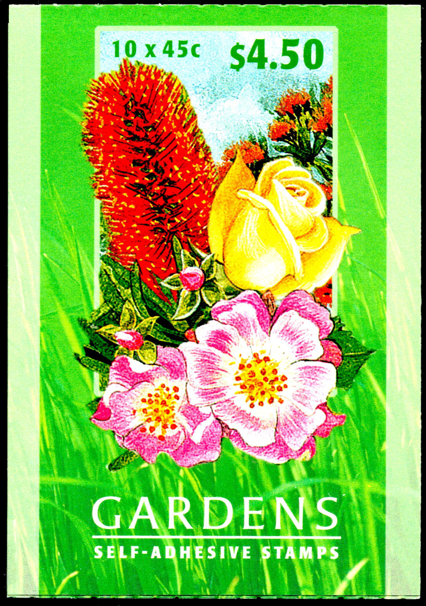 45c Coast Bankas False Sarsapanita and Swamp Bloodwood, 45c Swamp Bottlebrush and Eastern Spineball 45c Canna X Generalis Varieties, 45 Roses Purple Swaphen and 45c Hibicus, Nenum Oleander Gardens Complete Booklet. Mint never hinged.Seller Information