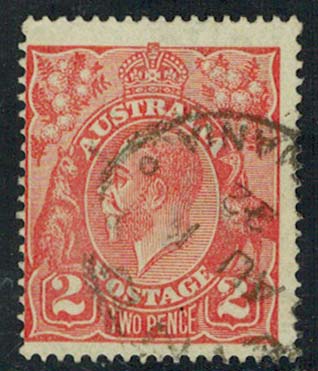 2d Red KGV Watermarked Wide Crown and Narrow A. Used.