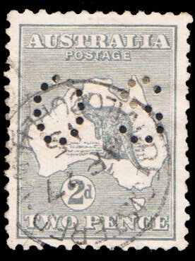 2d Kangaroo Official with O S perfin. Used with pulled perforation.Seller Information