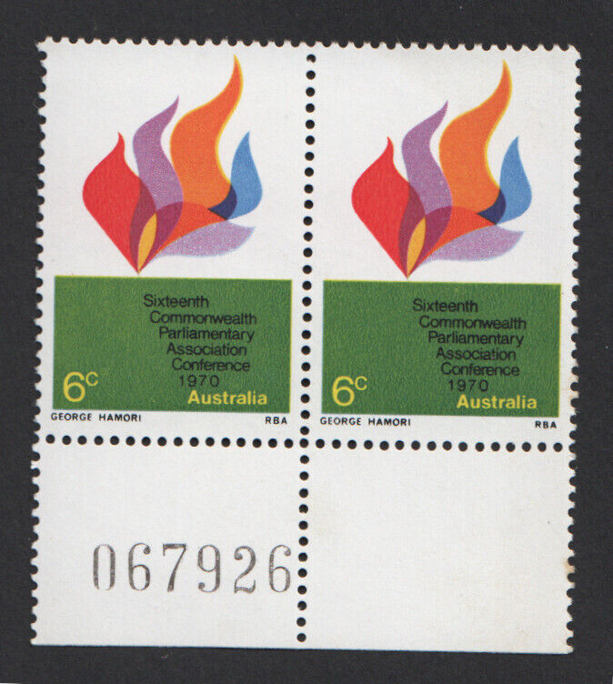 Australia SG473 sheet number pair mint
