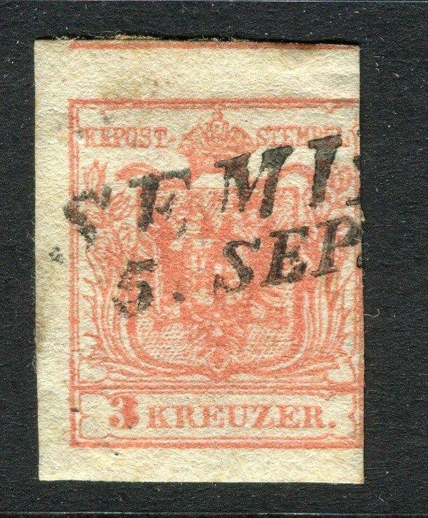 AUSTRIA; 1850 early classic Imperf issue used 3k. value, fair PostmarkAUSTRIA; 1850 early classic Imperf issue used 3k. value, fair Postmark,