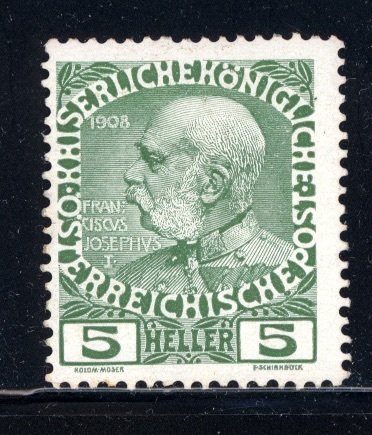 Austria 1908 Scott #113 MH. Available Only to U.S. and Canada.