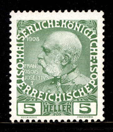 Austria 1908 Scott #113 MNH. (See Scott's Classic Specialized Catalog for single MNH prices.) Available Only to U.S. and Canada.