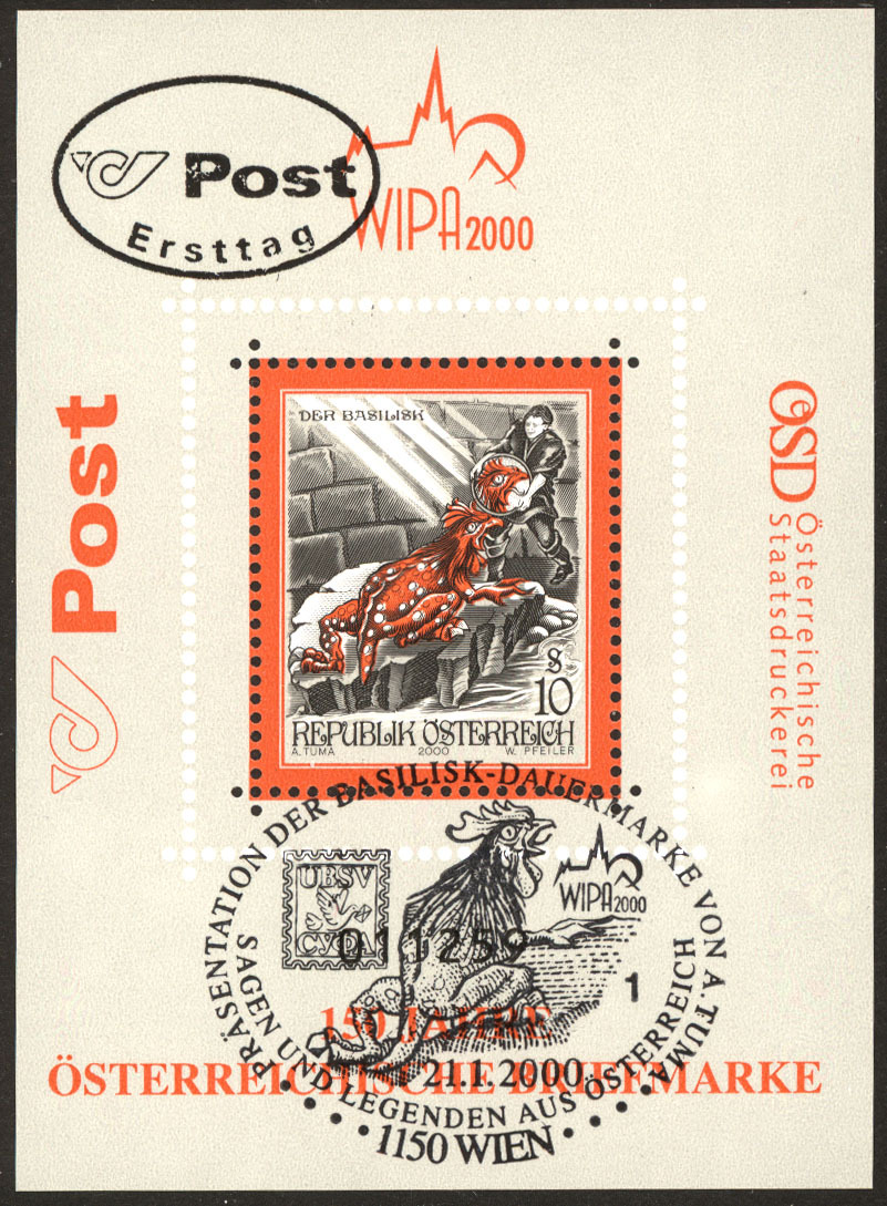 Austria 2000 Scott #1804a sheet used, First Day postmark. Available Only to U.S. and Canada.