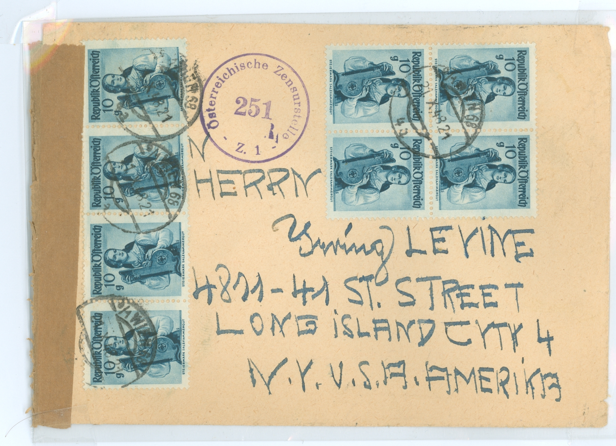 10 copies, 8 on front 2 on rear, to Long Island; censored APS Stamp Id: 501322158 APS Seller Id: 518188 Hinge Type: Not Specified Other Catalog Name: Michel Other Catalog Number: 894
