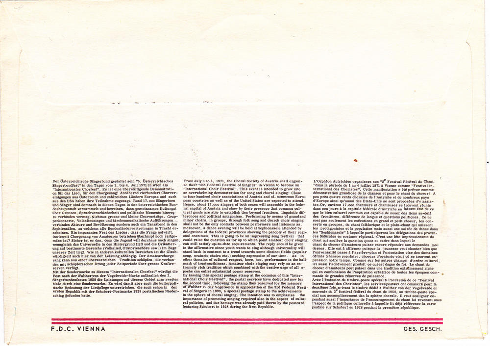 Austria 900 Set FDC Singer with Lyre (A)