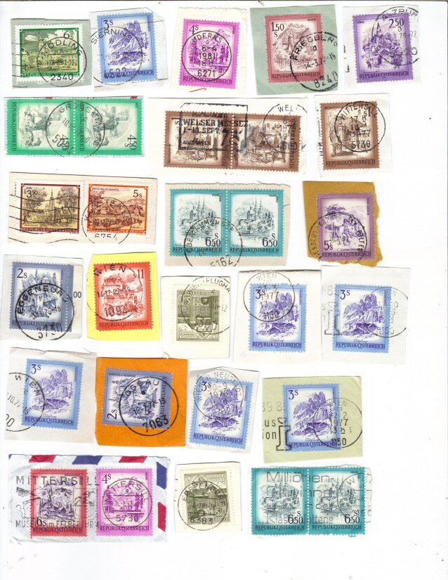 A little mix of stamps from Austria, ON paper. All picked for their clear and reasonably complete town/date postmarks. Mostly 1990s.