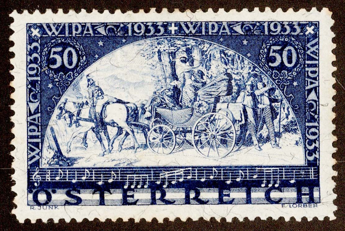 50g+[50g] Stagecoach WIPA 1933 Philatelic Exhibition Granite Paper. Mint never hinged.Seller Information
