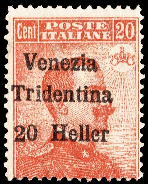 Italy 20c Victor Emmanuel III Overprinted Venezia Tridentina 20 Heller. Unused hinged.Seller Information