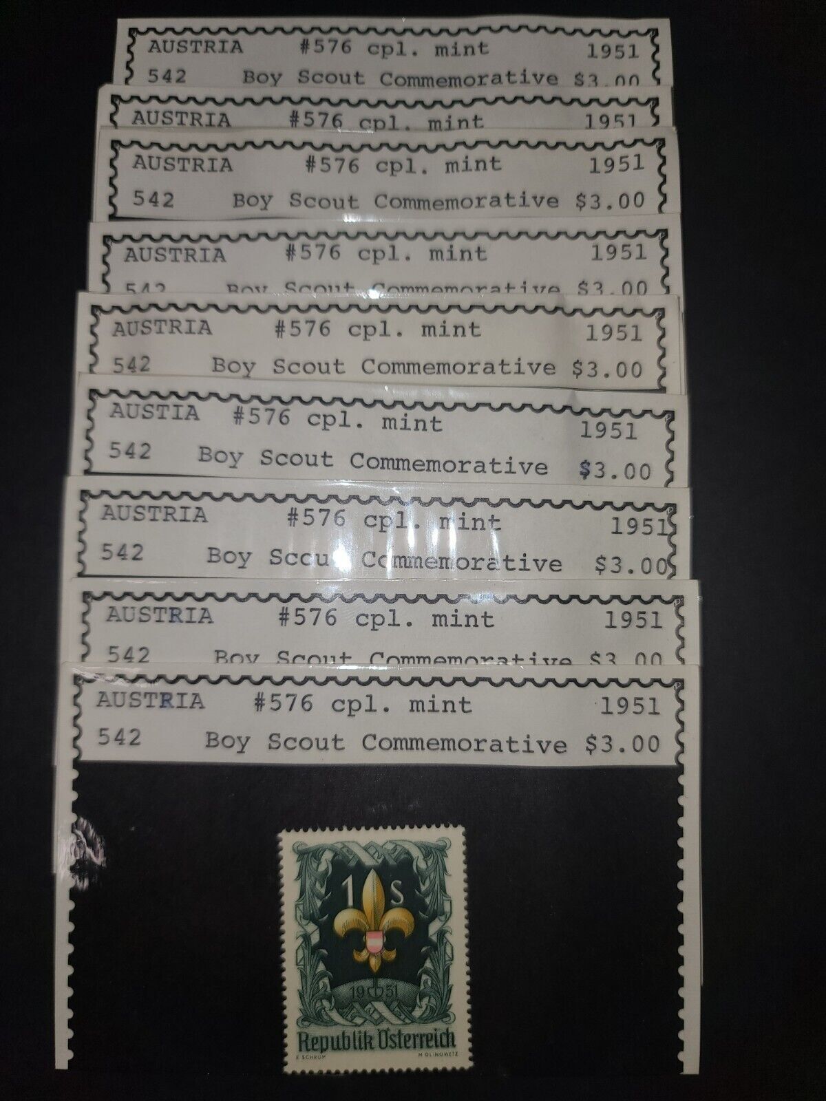 These stamps are in Mint Never Hinged condition. I have several duplicates of this MNH stamp in dealer stock cards. You will get one of the sets I have in stock. This is a boyscout commemorative stamp.