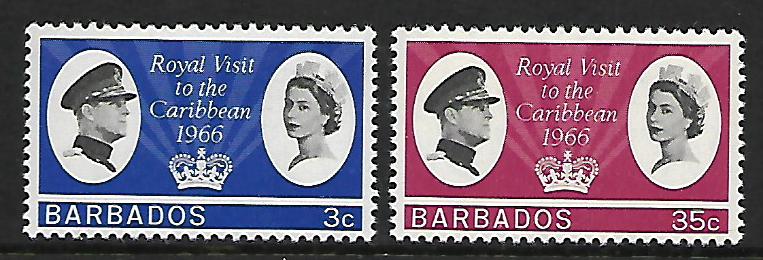 BARBADOS 285-286 MINT HINGED ROYAL VISIT