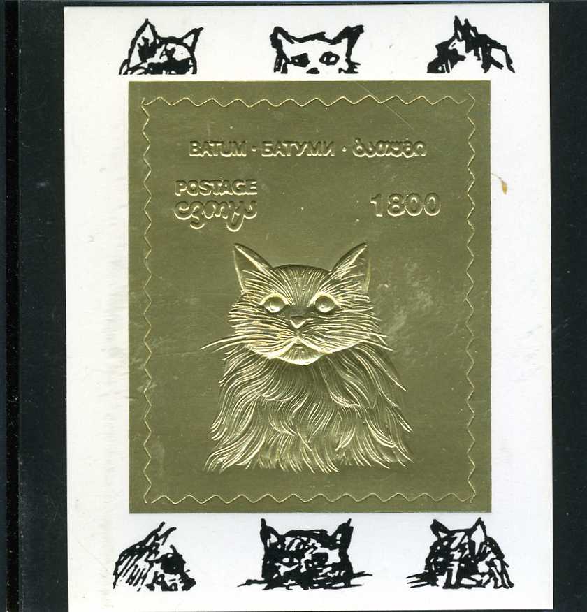 Batumi 1994 (Georgia)) DOMESTIC CAT Gold Foil Deluxe s/s Mint (NH)