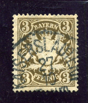 German States - Bavaria Scott# 60, Michel #60 1890 3pf brown