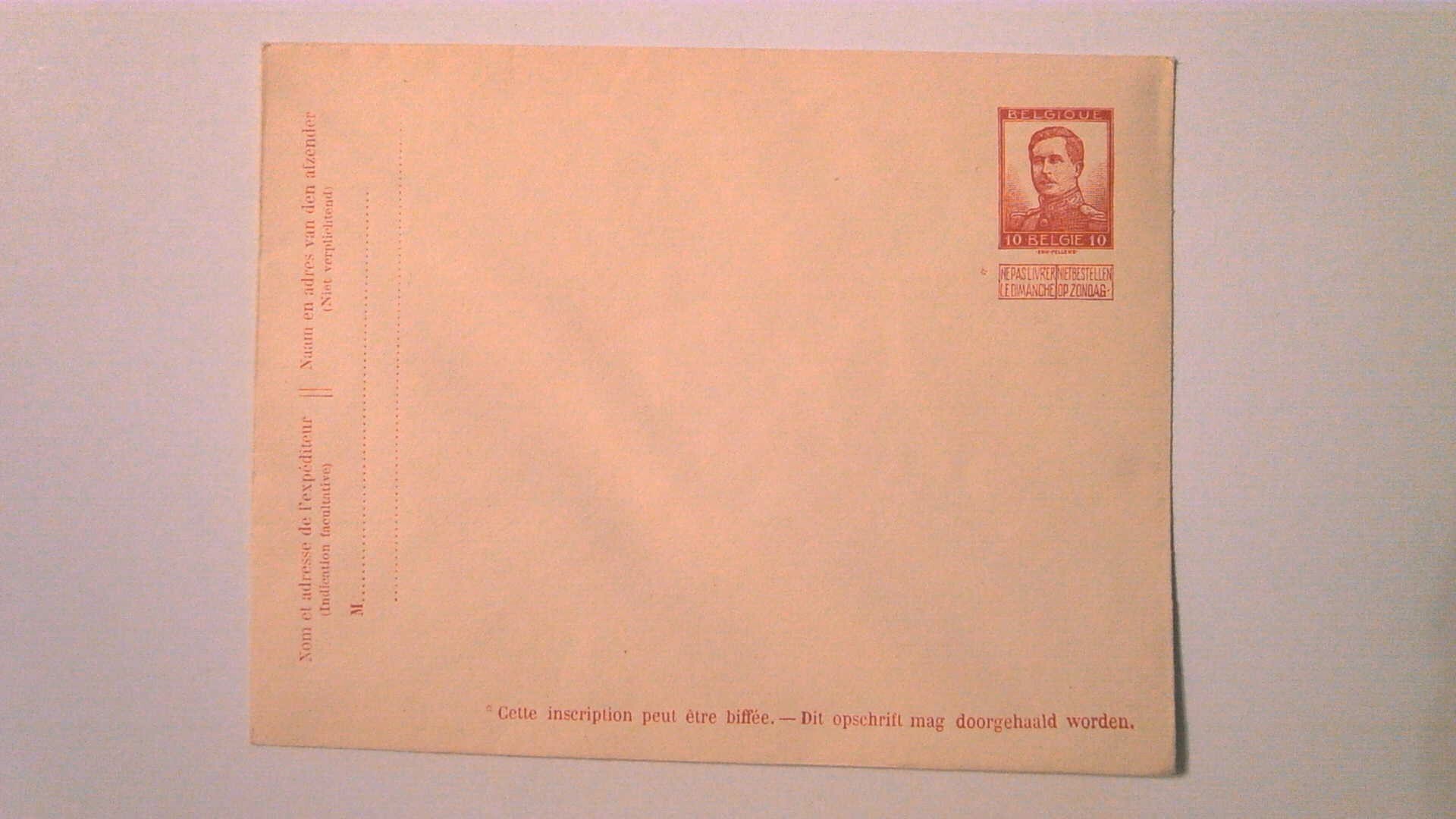 BELGIUM POSTAL ENV MINT ENTIRE