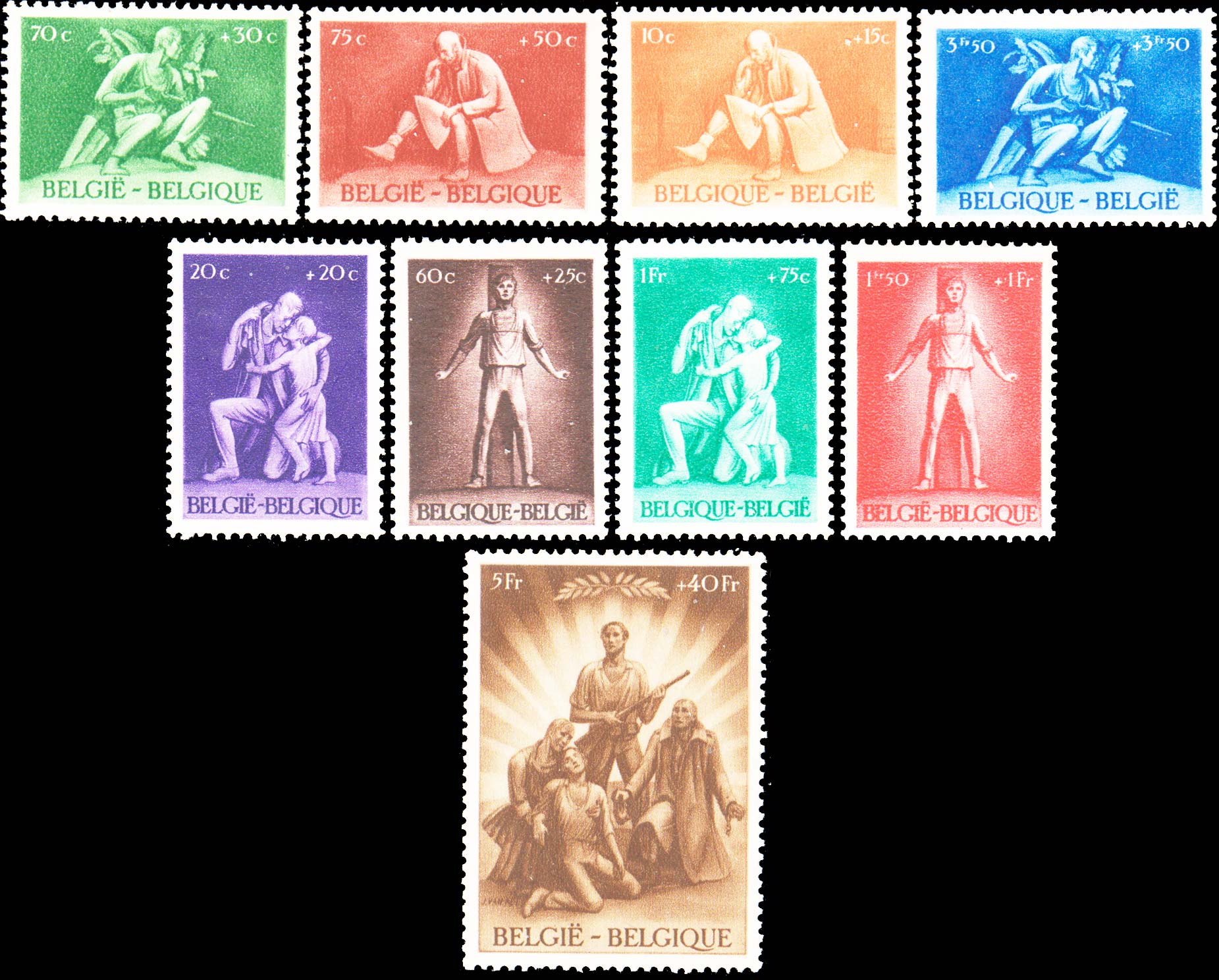 10c+15c and 75c+50c Prisoner of War, 20c+20c and 1F+75c Reunion, 60c+25c and 1.50F1F Awaiting Execution, 70C+30c and 3.50F+3.50F Member of the Resistance Movement, 75C+50 and 5F+40F Recovery of Freedom and 20F+20F Prisoners of War and Displaced Persons FaSeller Information