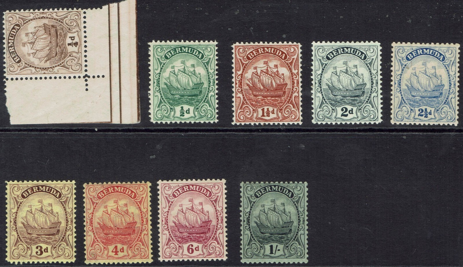 BERMUDA 1922 SHIP RANGE TO 1/- WMK MULTI SCRIPT CA