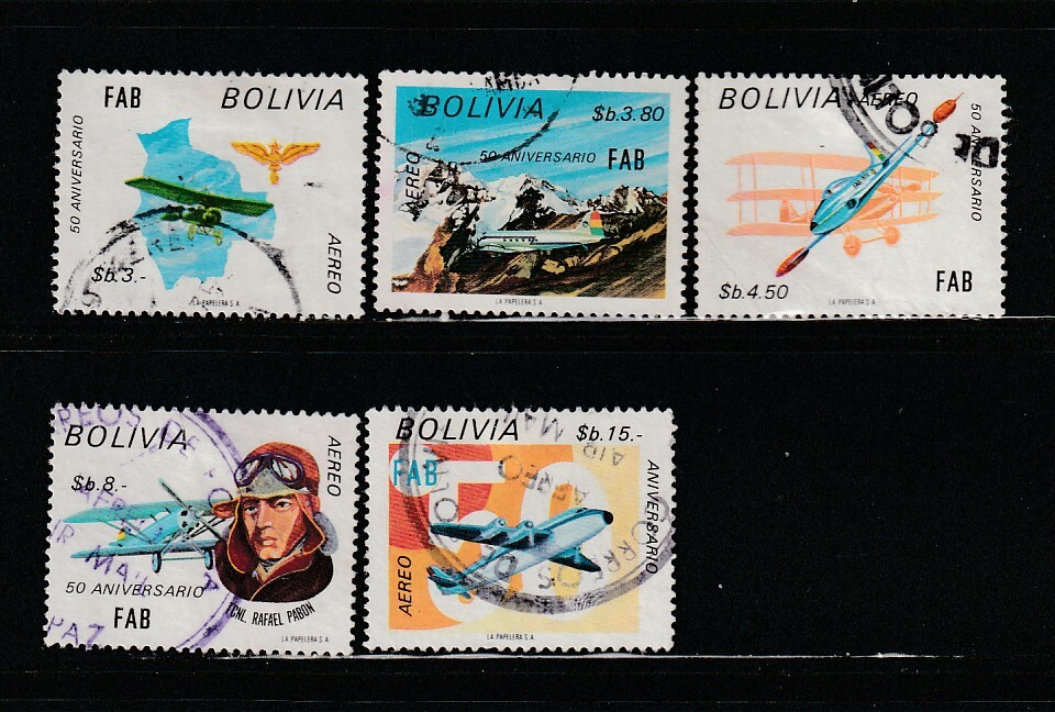 Bolivia C331-C335 Complete Set Used, Planes