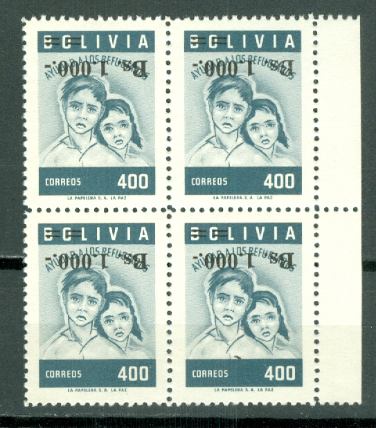 BOLIVIA "ERROR" #456 INVERTED SURCH....BLK...MNH