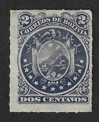BOLIVIA Scott #25 MH 2c violet Coat of Arms stamp. Scott 2017 catalogue value is $4.00Harris Philatelic Exchange is a 40 year member of APS and registered part time dealer.