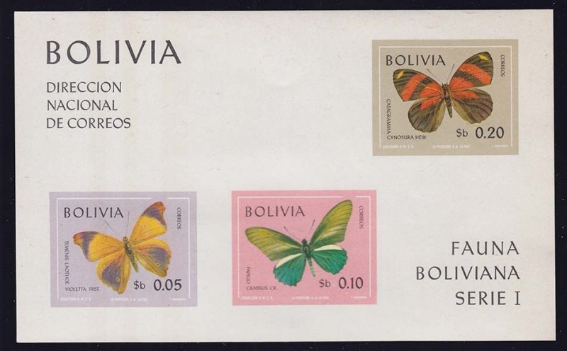 5c, 10c and 20c Butterflies Imperforate Souvenir Sheet of three. Mint never hinged.Seller Information