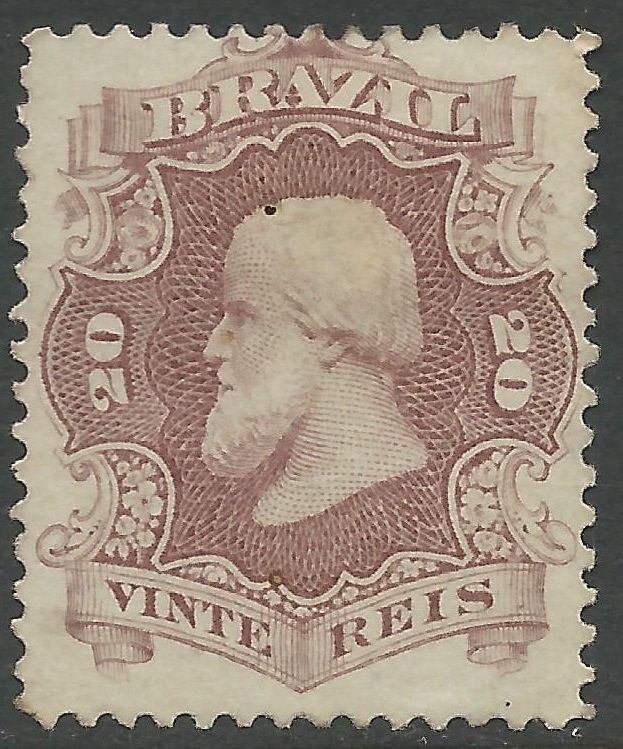 Brazil 1866 dom pedro 20r red lilac #54 vg unused cv $25.00 no gum, as usual. Small faults. Look fresh. Shipping cost: no shipping fees. Canadian residents: 5% gst will be charged. Quebec residents: 5% gst will be ... Read More