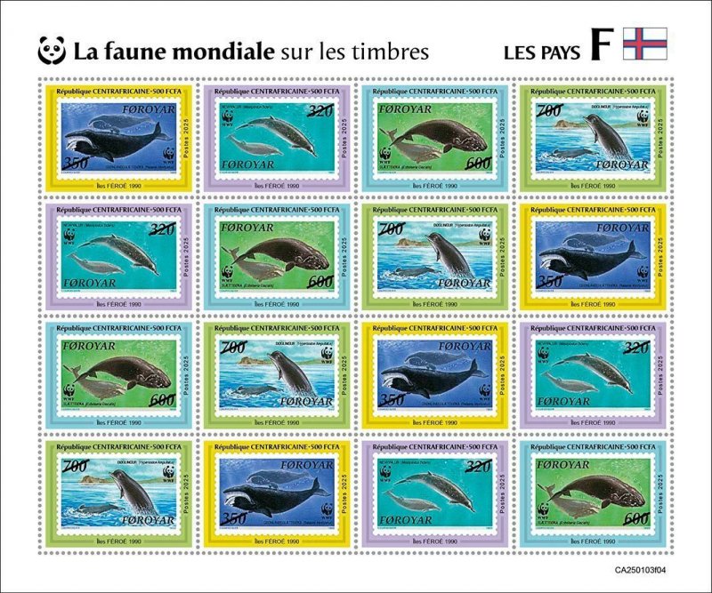 C A R - 2025 - Fauna on Stamps, Faroe Islands - Perf 16v Sheet - Mint Never Hinged