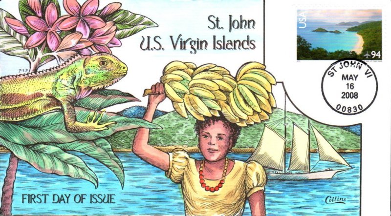 #C145 Trunk Bay - Saint John US Virgin Islands first day cover by Fred Collins. Postmark State: VI City: St. John Year: 2008 Month: 5 Day: 16