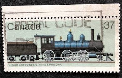 37 c stamp from set, Grand Trunk Class E 3 Locomotive, used, catalog: 0.65
