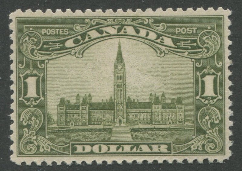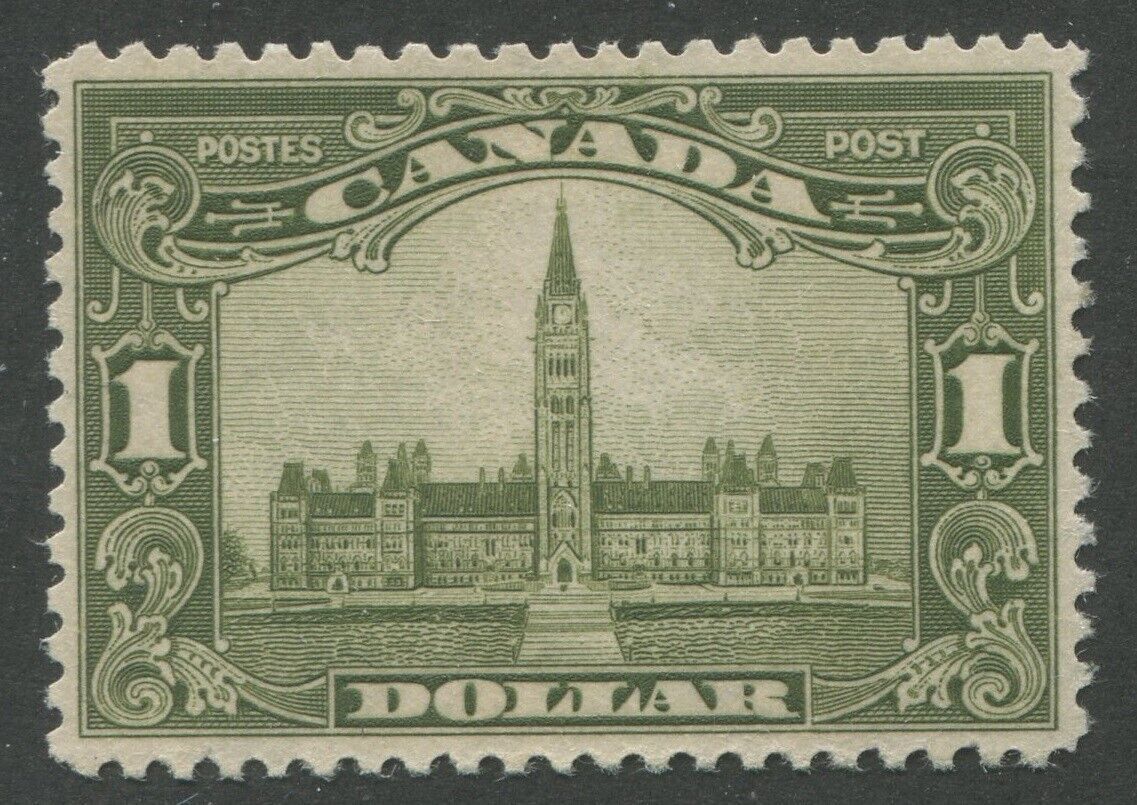 Canada King George V "Scroll" Issue #159 Parliament Building $1 olive green Mint Vf NH Reperfed Powered by SixBit's eCommerce Solution