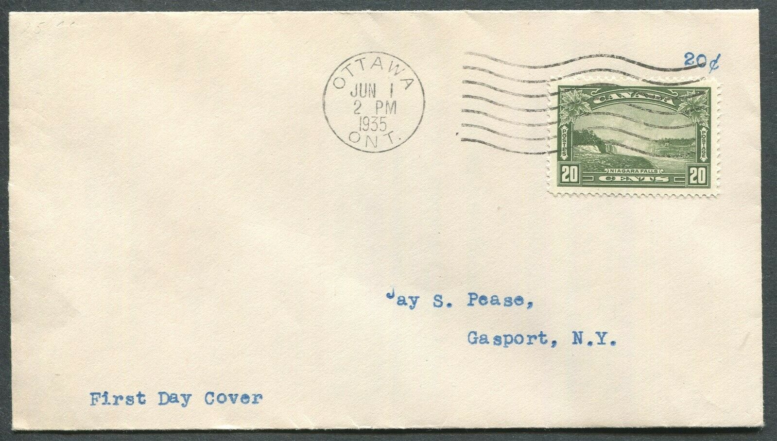 Canada King George V Pictorial Issue #225 Niagara Falls 20¢ olive green First Day Cover *See Pictures for Condition* Powered by SixBit's eCommerce Solution