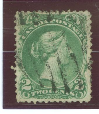 1868 Queen Victoria; 2c green "large queen" issue; pencil markings on back. APS Stamp Id: 501688237 APS Seller Id: 557370 Hinge Type: LH