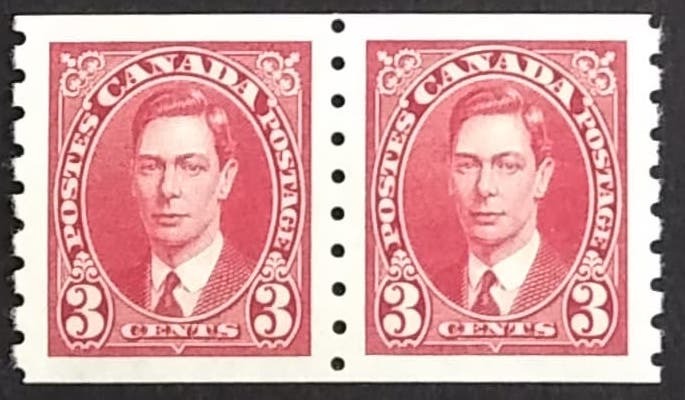 King George VI Coil Stamps: 3¢ carmine.Sales History