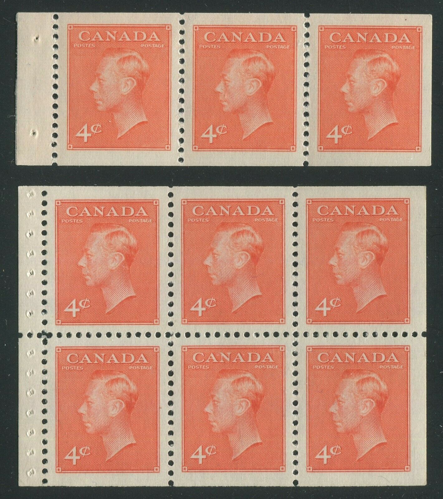 Canada King George Vi With "Postes-Postage" #306a, 306b 4¢ orange vermilion booklet panes of 3, 6 Mint Vf NH Powered by SixBit's eCommerce Solution